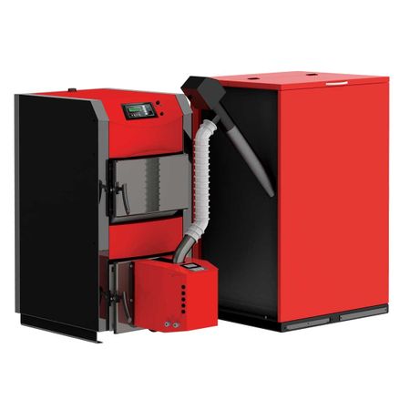 Cu o putere de 40 kW, această centrală acoperă eficient necesarul termic pentru suprafețe medii și mari. Sistemul dual vă permite să utilizați lemne, brichete sau cărbune pentru un cost redus, și să comutați pe peleti pentru un automatism deplin și un confort sporit.