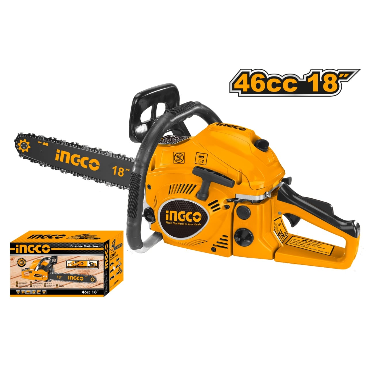 Drujba profesionala pe benzina Ingco 46cc, 2.4cp. Putere si fiabilitate pentru taiere lemn. Pret special 379 RON.