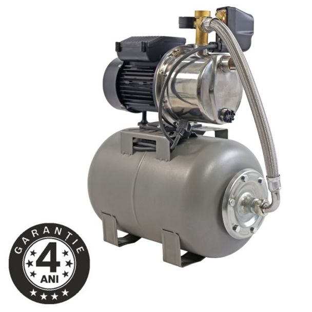 Hidrofor cu pompa autoamorsanta din inox Wasserkonig 25LMX3.8-51, putere 1000 W, debit maxim 3780 l/h, inaltime refulare max 51 m, vas de expansiune 24 lHidrofor cu pompa autoamorsanta din inox Wasserkonig 25LMX3.8-51, putere 1000 W, debit maxim 3780 l/h, inaltime refulare max 51 m, vas de expansiune 24 l, este ideal pentru alimentarea cu apa curata in sistem automatizat aplicatiilor casnice uzuale sau cresterea presiunii din reteaua de alimentare cu apa potabila.Echipat cu motor puternic de 1000 W si vas de expansiune fabricat in Italia, asigura necesarul de apa pentru instalatii casnice, spalatorii auto sau sisteme de irigatii de dimensiuni medii.Performante hidraulice:Caracteristici constructive:- motor electric asincron cu 2 poli;- protectie termica autoresetabila si condensator de pornire;- diametrul de aspiratie: 1"";- diametrul de refulare: 1"";- turbina, difuzorul si tubul aspiratie: PPO de calitate superioara;- garnitura mecanica: ceramica/grafit/NBR;- carcasa motorului: aliaj de aluminiu de inalta calitate;- corpul pompei: inox;- ax pompa din otel inoxidabil;- serviciu continuu S1;- vas de expansiune Wasserkonig, fabricat in Italia, vopsit in camp electrostatic, cu membrana de cauciuc, cu volum de 24 l.