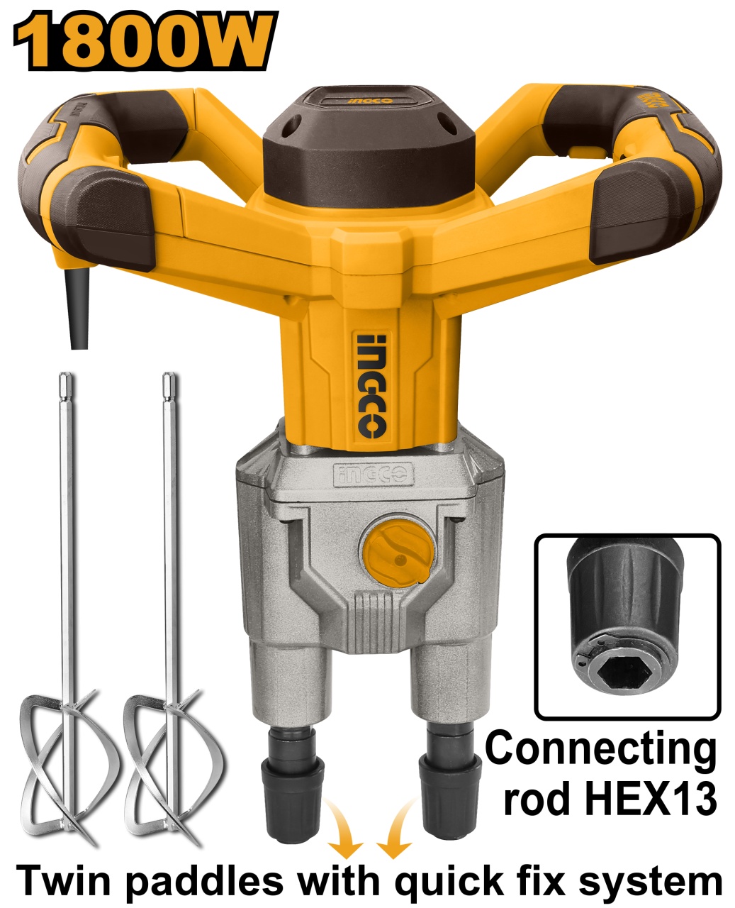 Mixer electric dublu Ingco MX218008, 1800W, Hex13, 480rpm, variator turatie 6 nivele. Profesional si eficient.
