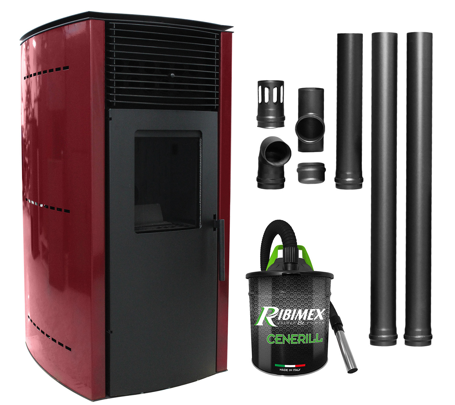 Descoperiți soluția ideală pentru încălzirea locuinței cu pachetul complet Fornello Stela, un sistem pe peleti de 10 KW ce asigură confort termic pentru suprafețe de până la 100 mp. Designul elegant în nuanță Bordeaux se integrează perfect în orice încăpere, oferind atat eficiență, cât și un aspect modern.