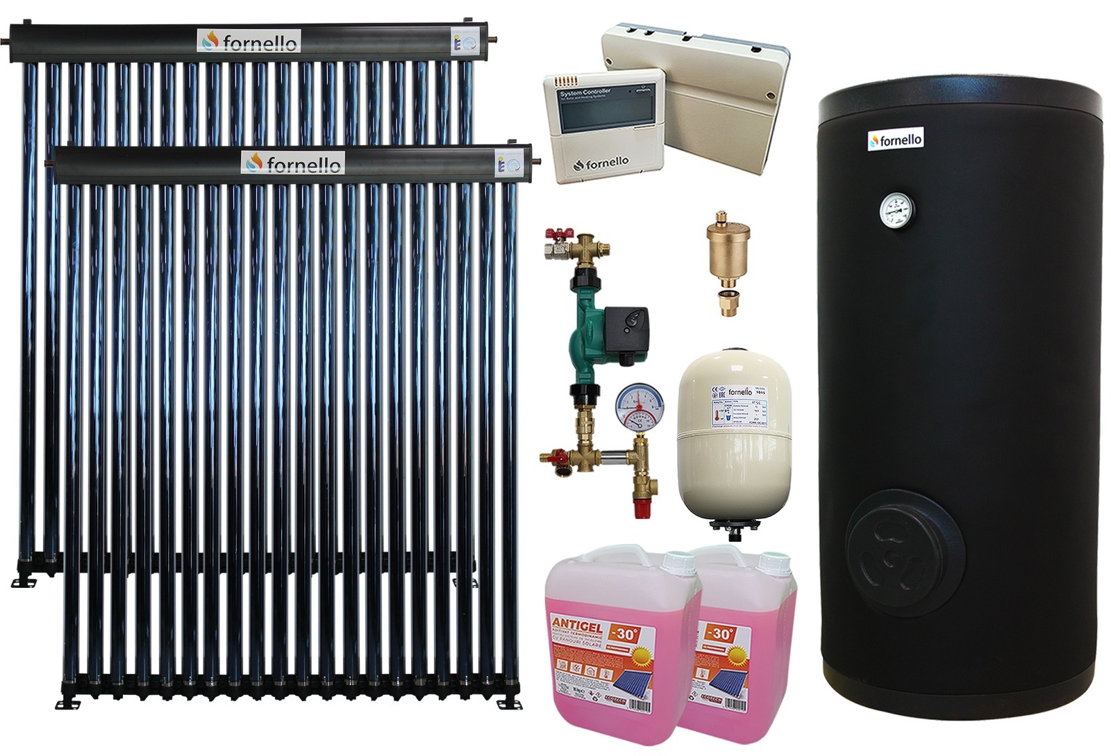 Pachet complet sistem solar presurizat Fornello 40 tuburi cu boiler 300L. Economii de 80% la apa calda. Livrare rapida!