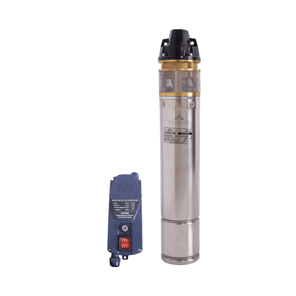 Descriere ProdusPompa submersibila periferica, pentru ape curate de adancime medie.Constructia cilindrica, cu diametrul de 4"", o recomanda pentru pomparea apei din puturi forate si fantani, pentru alimentarea economica a instalatiilor de apa casnice, pentru sisteme de irigatii sau transvazarea apei in general.Caracteristici constructive pompa submersibila SI10052:-carcasa pompa, carcasa motor si axul pompei din materiale inoxidabile pentru a evita aparitia coroziunii;-corpul de refulare din fonta, rezistent la uzura mecanica si coroziune;-motor scufundat in baie de ulei pentru racire eficienta;-infasurarea statorului din cupru de inalta puritate pentru incalzire redusa si eficienta ridicata a motorului;-panou electric cu condensator de pornire si protectie ampermetrica cu resetare manuala, incorporate. Specificatii tehniceTensiune de alimentare [V/Ph] - 230V / 1Ph / 50HzGradul de protectie - IP 58Putere [W] - 1450Tipul de apa vehiculata - ape curateMaterial corp pompa - InoxDebit maxim refulat [l/min] - 51.6Inaltime de refulare [m] - 100Diametru de refulare [""] - 1Clasa de izolatie - BInfasurare stator - CupruMaterial ax pompa - InoxMaterial turbina - BronzMaterial carcasa motor - InoxLungime cablu de alimentare [m] - 10Adancimea maxima de imersie [m] - 10Diametru exterior pompa [""] - 4Cantitate maxima de solide in suspensie [ppm] - 50Intrerupator - DaPanou de comanda - DaGarnitura mecanica - Tripla etansareDimensiuni nete HxD [mm] - 530 x 96CURBA DE FUNCTIONAREPERFORMANTEAPLICATII-alimentarea cu apa curata, in general;-sisteme de irigatii de dimensiuni mici si medii;-umplere/golire rezervoare;-cresterea presiunii apei curate pentru utilizarea in diverse aplicatii;-transferul apei curate din fantani, puturi forate sau rezervoare.