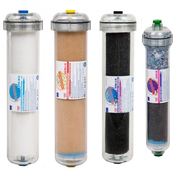 Set 4 cartuse In-Line Aquafilter Excito-CL. Înlocuire la 3-6 luni. Apă purificată sigură pentru casă și birou.