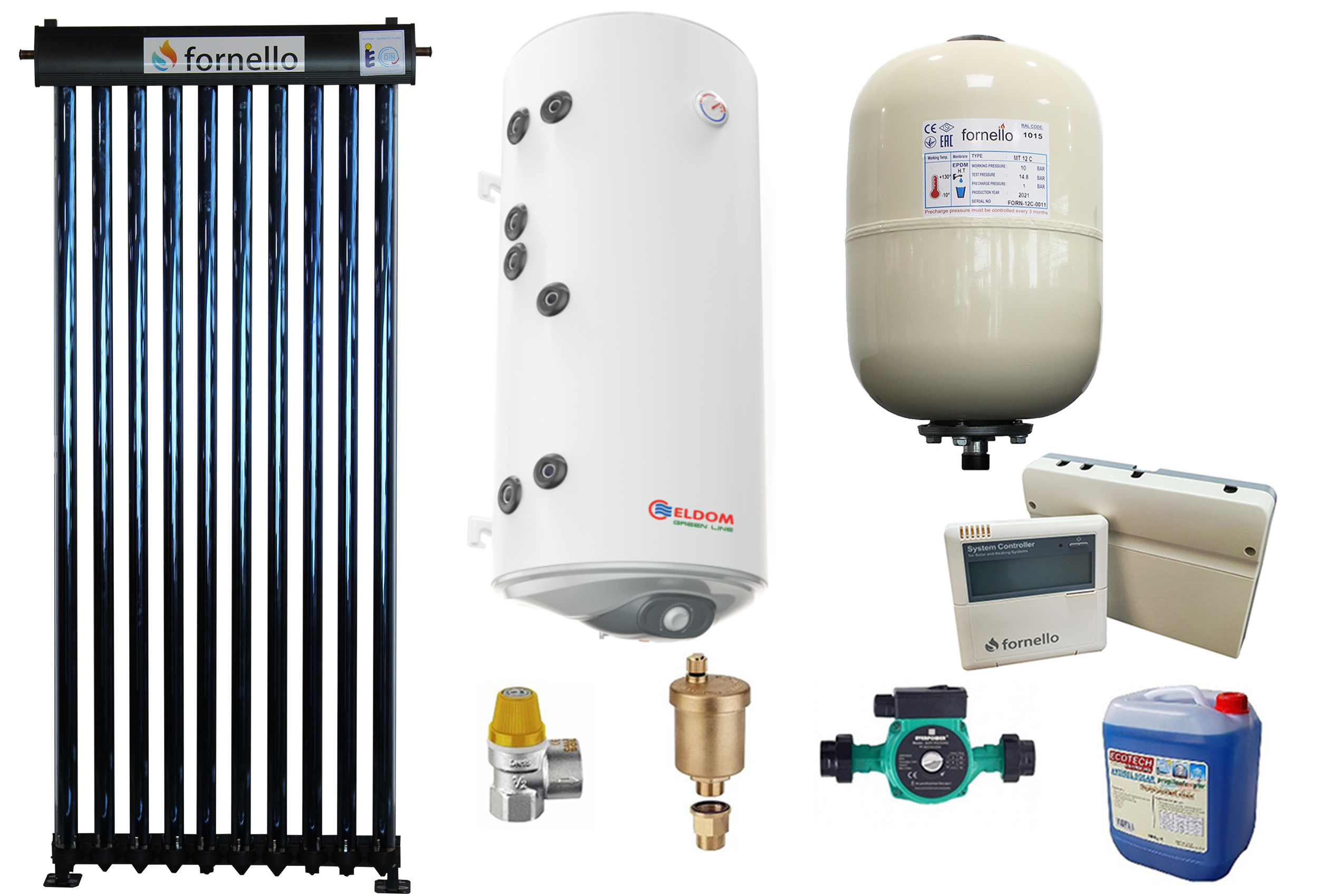 Sistem solar complet Fornello cu 10 tuburi heat pipe si boiler 100L. Economisiti 80% la apa calda. Livrare rapida. Pret avantajos.