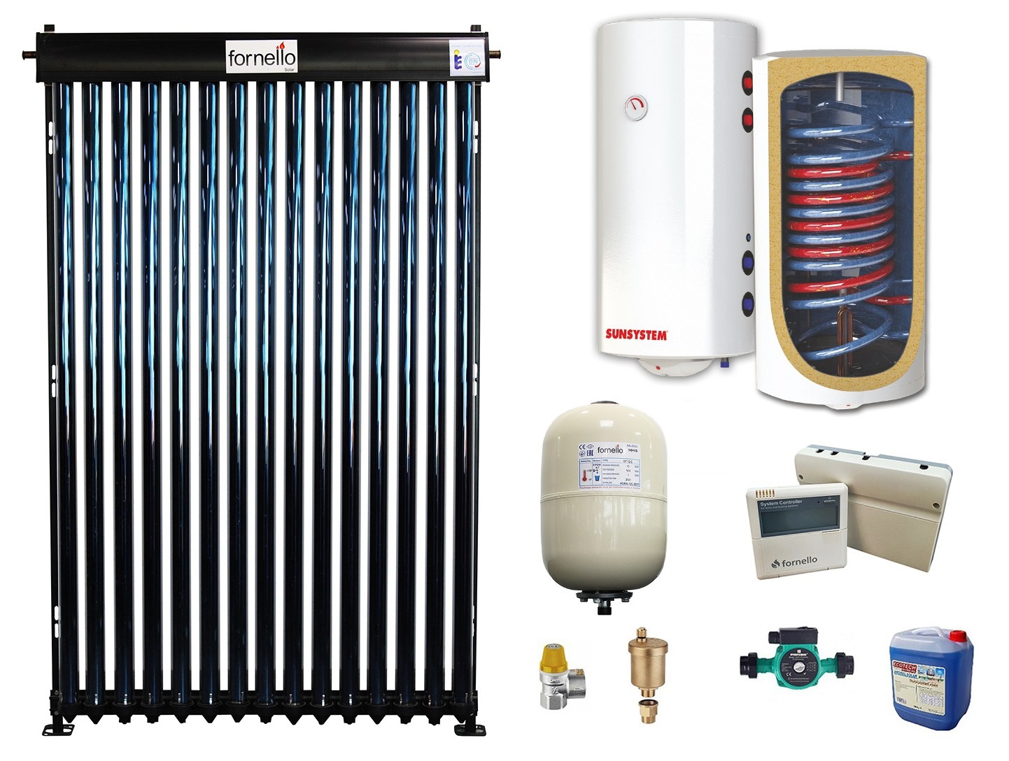 Sistem solar presurizat Fornello complet, gata de montaj. Economisiți la facturi cu apă caldă menajeră tot anul. Include boiler 100L.