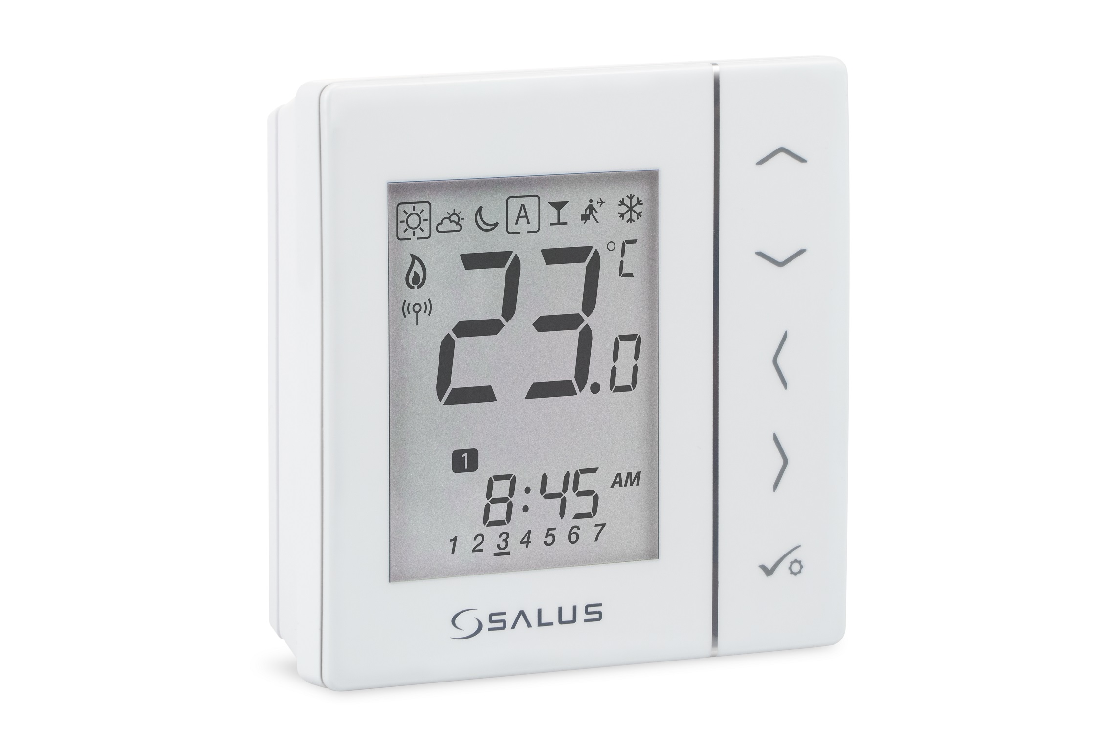 Termostat Salus VS20WRF WiFi este un element conceput pentru sistemele de încălzire prin pardoseală sau radiatoare. Acest termostat digital are patruconfigurări și funcționează pe bază de conexiune wireless. Astfel, alimentat cu baterii poate fi așezat pe birou sau montat pe perete. Acesta face parte dinsistemul Salus Smart Home iT600 și păstrează același design modern și curat. Termostatul Salus VS20WRF este disponibil în două variante coloristicestandard: alb și negru.Opțiuni de configurare:termostat ambiental programabil;termostat pentru comanda grupului;termostat grup;termostat programator pentru apă caldă;Acest termostat programabil Salus VS20WRF este conectat fără fir la un centru de comandă KL08F sau la un servomotor cu transmie prin unde radio.Comunicarea dintre termostat și centrala termică se realizează prin intermediul receptorului RX10RF. Termostatul poate fi controlat și prin aplicația SalusSmart Home de pe smartphone sau tabletă. Dispozitivul Gateway UGE600 și coordonatorul CO10RF (vândute separat) stabilitesc comunicarea wireless.Dispozitivele din sistemul Salus iT600 comunică între ele prin rețeaua ZigBee. Astfel, încălzirea prin pardoseală sau radiatoare poate fi controlată cuușurință.Pentru cuplarea la un sistem de încălzire în pardoseală veți avea nevoie de următoarele echipamente:centrul de comandă: KL08RFservomotor: T30NC230receptorul: RX10RFgateway: UGE600În cazul conectării într-un sistem de încalzire prin radiatoare, sunt necesare următoarele echipamente:centrul de comanda: KL08RFcap termostatic: TRV10RFMreceptorul: RX10RFgateway: UGE600Comunicarea wireless se face prin coordonatorul CO10RF (disponibil separat).Caracteristicialgoritm TPI - garantează menținerea unei temperaturi preciseposibilitate de a crea propriile programe de încălzireaccesul la crearea propriilor scenarii cu ajutorul regulilor OneTouch (de exemplu, temperatura în camera de zi va crește atunci când vă întoarceți de la locul de muncă).program încălzire/răciredesign modern și funcționare silențioasăo intrare pentru senzorul suplimentar de temperatură